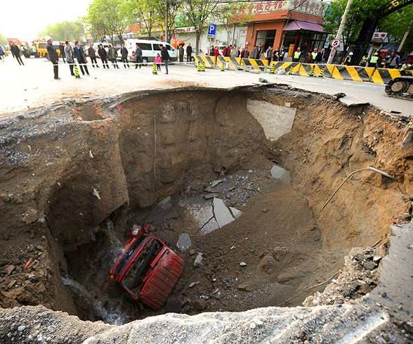 Huge pit visible in Shanghai after viral sinkhole video