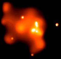 Supermassive black holes, notorious for ripping apart and swallowing stars, might also help seed interstellar space with the elements necessary for life, such as hydrogen, carbon, oxygen and iron, scientists say. Using NASA's Chandra X-ray Observatory and ESA's XMM-Newton satellite, scientists at Penn State University and the Massachusetts Institute of Technology found evidence of high-speed winds blowing away copious amounts of gas from the cores of two quasar galaxies, which are thought to be powered by black holes. "The winds we measured imply that as much as a billion suns' worth of material is blown away over the course of a quasar's lifetime," said George Chartas of the Penn State Astronomy and Astrophysics Department, who led the observations. The winds might also regulate black hole growth and spur the creation of new stars, according to the science team, which includes Niel Brandt and Gordon Garmire of Penn State and Sarah Gallagher of MIT. These results are presented today in a press conference at the meeting of the High Energy Astrophysics Division of the American Astronomical Society at Mt. Tremblant, Quebec. Different from high-speed jets shooting off subatomic particles, the newly identified gusts arise from the disk of matter orbiting the black hole, called the accretion disk, once thought to be a one-way ticket into the black hole. Black holes are objects so dense that nothing, not even light, can escape their gravitational attraction. But this only applies once matter crosses the theoretical border of a black hole, called the event horizon. Outside the event horizon, the tug of gravity is strong, but matter and light can escape. Theorists have suggested that a wind could blow away material from its accretion disk and pepper the interstellar region with heavier elements. The wind is created by radiation pressure, analogous to earthly winds created by varying high and low air pressure systems. Chartas and his colleagues observed two quasars, which are exceedingly distant star-like objects thought to be the bright cores of galaxies fueled by a supermassive black hole. With Chandra, the team observed a quasar called APM 08279+5255; and with the European Space Agency's XMM-Newton, they observed a quasar named PG1115+080. Both quasars are billions of light years away from Earth. However, APM 08279+5255 was naturally magnified by a factor of about 100 and PG1115+080 by a factor of about 25 through a process called gravitational lensing. Essentially, their light, while en route to us, was distorted and magnified by the gravity of intervening galaxies acting like telescope lenses. With the natural boost in magnification, coupled with the X-ray observatories' abilities, the scientists could ascertain several key properties in the quasar light, such as the speed of the gas that absorbed the light, as well as the material's proximity to the black hole. The team found the first observational evidence of a wind component transporting a substantial amount of carbon, oxygen and iron into the interstellar and intergalactic medium. The wind was moving at 40 percent light speed, considerably faster than predicted. Brandt said the observation may spur new theoretical work about black hole winds and their effect on their environs. For example, Brandt said, "the wind might provide insight to the relationship between black hole mass and the central bulge of its host galaxy." Chandra, launched in July 1999, is the third in NASA's Great Observatory series, a sister craft to the Hubble Space Telescope. ESA's XMM-Newton was launched from French Guiana in December 1999 and carries three advanced X-ray telescopes. NASA's Marshall Space Flight Center in Huntsville, Ala., manages the Chandra program, and TRW, Inc., Redondo Beach, Calif., is the prime contractor for the spacecraft. The Smithsonian's Chandra X-ray Center controls science and flight operations from Cambridge, Mass., for the Office of Space Science at NASA Headquarters, Washington. Related Links Penn State University SpaceDaily Search SpaceDaily Subscribe To SpaceDaily Express