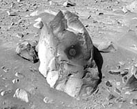 NASA's Spirit has found hints of a water history in a rock at Mars' Gusev Crater, but it is a very different type of rock than those in which NASA's Opportunity found clues to a wet past on the opposite side of the planet. A dark volcanic rock dubbed "Humphrey," about 60 centimeters (2 feet) tall, shows bright material in interior crevices and cracks that looks like minerals crystallized out of water, Dr. Ray Arvidson of Washington University, St. Louis, reported at a NASA news briefing today at NASA's Jet Propulsion Laboratory, Pasadena, Calif. He is the deputy principal investigator for the rovers' science instruments. "If we found this rock on Earth, we would say it is a volcanic rock that had a little fluid moving through it," Arvidson said. If this interpretation is correct, the fluid - water with minerals dissolved in it - may have been carried in the original magma that formed the rock or may have interacted with the rock later, he said. The clues appear in an interior exposure of "Humphrey" where Spirit's rock abrasion tool scraped away the rock's surface to a depth of 2 millimeters (.08 inch). To gain more confidence that the bright material seen in cracks and pores is not dust that has intruded from the surface over the millenia, scientists intend to have Spirit grind more deeply into another dark rock, not yet selected. The bright material is not debris from the grinding process, said Stephen Gorevan of Honeybee Robotics, New York, lead scientist for the abrasion tool. The amount of water suggested by the possible crystals in "Humphrey" is far less than what is indicated by the minerals and structures that Opportunity has revealed in rocks at Meridiani. Rover scientists announced the Opportunity findings earlier this week. "Mars is a diverse planet," Arvidson said today. Spirit is headed toward a crater nicknamed "Bonneville," about 150 meters (500 feet) in diameter, where scientists hope to see rocks from beneath the region's surface volcanic layer. Those rocks may tell yet a different story from an earlier era of Gusev Crater's past. At Meridiani Planum, Opportunity has finished taking a set of 114 microscope images of a rock called "Last Chance" to examine details of the rock's layering structure. The sequence required more than 400 commands and more than 200 positions of Opportunity's robotic arm, said Opportunity Mission Manager Matt Wallace of JPL. "Our activities are getting increasingly complex," he noted. Spirit completed its 60th martian day, or sol, at Gusev late Thursday. Opportunity completed its 40th sol at Meridiani at 9:32 a.m. Friday, PST. "Between the two rovers, we've had a terrific 100 days on Mars. This last week has been particularly exciting," Wallace said. A new color view, combining several frames from Opportunity's panoramic camera, adds information about the rover's likely destination after finishing work in and around the small crater where it landed. From partway up the inner slope of that 22-meter-diameter (72-foot-diameter) crater, the rover has an improved view of a crater nicknamed "Endurance," about 10 times as big and about 700 meters (2,300 feet) to the east. "We can see features in the rim, maybe streaks, maybe layers," said Dr. Jim Bell of Cornell University, Ithaca, N.Y., lead scientist for both rovers' panoramic cameras. The same new view across the flat plain of Meridiani also shows Opportunity's jettisoned heat shield, a trail of marks left by the airbag bounces and a solitary dark rock about 40 centimeters (16 inches) across. Bell said, "Not only did we get incredibly lucky to get this hole-in-one in the crater, but on the way into the crater we hit with the airbags the only rock around." Both rovers carry magnets supplied by Denmark for experiments to analyze martian dust. Dust covers much of Mars' surface and hangs in the atmosphere, occasionally rising into giant dust storms. One of the magnets is designed to exclude any magnetic dust particles from landing in the center of a target area. During Spirit's time on Mars, dust has accumulated on other parts of the target while the center has remained "probably the cleanest area anywhere on the surface of the rover," said Dr. Morten Madsen, science team member from the Center for Planetary Science, Copenhagen, Denmark. "Most, if not all of the dust particles in the martian atmosphere are magnetic," Madsen said. Another of the magnets is within reach of the rover's robotic arm. Examination of dust on the target by instruments on the end of the arm will soon yield further information about the composition of the dust, he said. Related Links Mars Rovers at JPL Mars Rovers at Cornell SpaceDaily Search SpaceDaily Subscribe To SpaceDaily Express