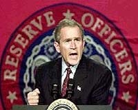 Washington (AFP) Jan 23, 2002 US President George W. Bush said Wednesday he would propose a 48-billion dollar increase in the US defense budget for fiscal 2003 in order to complete the war on terrorism. "My '03 budget calls for more than 48 billion dollars in new defense spending," Bush told the Officers Reserve Association annual conference. Announcing what would be the largest increase in defense spending for 20 years, Bush said the extra funds would ensure the United States wins its war on terrorism. "Those who review our budget must understand that we are asking a lot of our men and women in uniform and will be asking more of them in the future," the president said. "In return they deserve every resource and every weapon needed to achieve a final and full victory." The new figure will marks a 15-percent increase in the 2002 US defense budget approved at 318 billion dollars. Among the key appropriations in the supplement to the budget are weapons upgrades, homeland security and a pay raise for US troops, the president said ahead of his formal presentation of the budget set for February 4. With his proposal, Bush is betting on support from Democrats in light of the September 11 terrorist attacks, the US-led war on terrorism, and mid-term congressional elections just around the corner. Republicans and Democrats are due to face each other in November elections to renew the entire House of Representatives and one third of Senate seats. While US Senate majority leader Tom Daschle said later Wednesday it was "too early to come to a conclusion of what the numbers should be," he noted Bush had failed to heed warnings about the 11-year 1.35 trillion dollar tax cut that some Democrats want to stall. "We have said all along deficits would happen if we passed the tax cuts ... We told you so. It happened. It's there," Daschle said. "I don't want to 'Enron' the people of the United States -- I don't want to destroy their social security system," he said in reference to the December bankruptcy of energy giant Enron, and the current state of the US economy, in recession since March.