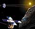 Eros - December 17, 1998 - When the Near Earth Asteroid Rendezvous (NEAR) spacecraft eases into orbit around the asteroid 433-Eros on January 10, dust may be one of its first discoveries. Earlier this year, the Mars Observer spacecraft found that the Red Planet's larger moon, Phobos, is coated with dust up to a meter deep."That was a surprise," said Dr. James Spann of NASA's Marshall Space Flight Center. "I'm not sure that anyone had an idea of what things look like on these small bodies. I don't imagine that Phobos is so unique that it would have dust and the rest of the small bodies like it won't." Spann is the director of the Dusty Plasmas Laboratory that was established at NASA's Marshall Space Flight Center earlier this year. It was designed to let scientists study the tiniest motes of dust in space-like conditions. Understanding how dust grains interact with each other, and how they react when exposed to sunlight will provide insight into how planets and stars form. The Thermal Emission Spectrometer (TES) instrument on the Mars Global Surveyor observed Phobos, one of the two moons of Mars, on three separate occasions. The primary objective has been to collect infrared spectra, at different wavelengths ranging from ~6 to 50 micrometers, of Phobos to study its composition and physical properties. The TES data indicate that the surface temperature in the shadowed region of Phobos is -170 F (~-112 C), while only several kilometers away on the sunlit side of Phobos the temperature is +25 F (~-4 C). The extreme temperature difference between the night and day sides of Phobos indicates that the surface is composed of very small dust particles that lose their heat rapidly once the Sun has set. In addition, Phobos does not have an atmosphere to help hold heat in during the night. The Mars Global Surveyor did not see the dust directly, but inferred its presence by measuring how quickly Phobos loses its body heat when the sun sets. The rapid loss is best explained by a huge surface area - much greater than if Phobos were a solid, relatively smooth body. A coating of dust would provide the increased surface area - the surfaces of all the miniscule grains added together - to radiate heat into space. This is why, for example, a desert cools so quickly after sunset. So why did dust collect on Phobos, and are Eros and other asteroids also are coated with dust? NEAR, one of NASA's Discovery-class missions, was launched on Feb. 17, 1996, and has already explored one asteroid, 253 Mathilde, in a quick flyby on June 27, 1997. NEAR will rendezvous with 433 Eros on January 10 and settle into an orbit that will be gradually tightened until it lands on the asteroid. Although it does not carry a thermal emission spectrometer like that on the Mars spacecraft, it may return some information about dust on Eros. "It may be that electrostatic forces keep those grains on there," Spann said. Because of the low mass of such bodies, "I don't think that gravity would do it." Spann noted that we tend to think of gravity as the only dominant force in the universe. Indeed, it holds solar systems and galaxies together, and makes leaving this planet an expensive undertaking. But other forces work at smaller scales.