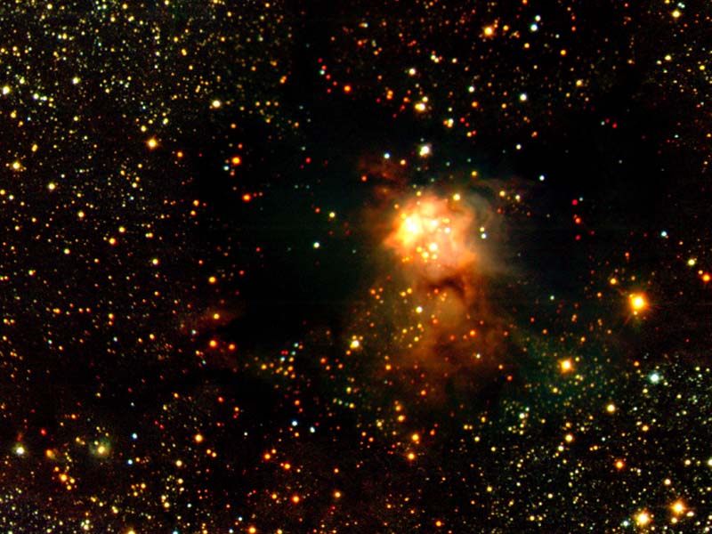 Garching - Oct. 27, 2000 A remarkable, wide-field infrared image allows to see in unprecedented detail the inner regions of RCW 108, a large complex of stars and nebulae in the southern Milky Way. It is one of the widest, "deepest" and most spectacular infrared astronomical images ever obtained of a starforming region. It is based on approx. 600 individual exposures with the SOFI multi-mode instrument on the ESO 3.58-m New Technology Telescope (NTT) at the ESO La Silla Observatory (Chile). The above infrared view (PR Photo 30a/00) of an interesting region in the Southern Milky Way, full of stars and nebulae and known as the RCW 108 complex, was obtained in February 2000. It provides a deep look into a star-forming region, where stars are in the process of being born from dense clouds of dust and gas. It is particularly interesting to compare the appearance of the area in this infrared view (SOFI) with that obtained earlier at visible wavelengths (WFI), cf. ESO PR Photos 21a-b/99. As they look quite different, such a comparison is greatly facilitated by referring to the positions of the same brighter objects in the two photos. In visible light, the Eastern edge of the cloud appears as a bright rim; the same edge is present, although less prominent to the left in the infrared image. This is where the outer surface of the cloud is eroded and later completely dissolved by the strong ultraviolet light of a nearby cluster of stars, that lies beyond the edge of the infrared image. Dust obscuration The bright nebula IRAS 16362-4845 at the center of the infrared picture is much more prominent here (see PR Photo 30b/00) than in the visible one. This is because it is deeply embedded in the cloud and its visible light is heavily obscured by the dust particles. This effect is much smaller at longer (infrared) wavelengths, so the SOFI image provides a more detailed view of IRAS 16362-4845. It is exactly this greater transparency of interstellar dust clouds in the infrared spectral region that is one of the main reasons why studies of very young stars are best carried out at infrared wavelengths. Such stars are often still surrounded by the remnants of their parental gas and dust clouds. The colours of the stars Dust not only dims the light of objects located behind the cloud, but also "reddens" it. This is because shorter-wavelength (e.g., blue) light is scattered out of the line-of-sight more efficiently than is longer-wavelength (e.g., red) light. This effect is clearly seen in the SOFI image, where stars located within the cloud area on the average appear much redder than those that are outside. There are a few exceptions, however: some stars that are seen "in" the darkest part of the cloud appear to be blue. This is because they are located in front of the cloud or are only slightly embedded in it. In fact, since the "real" (i.e., intrinsic) "infrared colours" of most stars are rather similar, the different colours we see in the SOFI picture are mostly due to different degrees of reddening by foreground dust. The colour of a star in this area is therefore mostly a measure of how deeply it is embedded in the nebula. Related Links ESO 3.58-m New Technology Telescope La Silla Observatory, Chile Additional Images SpaceDaily Search SpaceDaily Subscribe To SpaceDaily Express