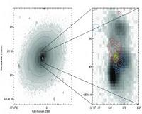 ![]() Surprise: Dwarf Galaxy Harbors Supermassive Black Hole The surprising discovery of a supermassive black hole in a small nearby galaxy has given astronomers a tantalizing look at how black holes and galaxies may have grown in the early history of the Uni ... more | .. |