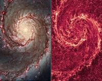 ![]() The Two-Faced Whirlpool Galaxy These images by NASA's Hubble Space Telescope show off two dramatically different face-on views of the spiral galaxy M51, dubbed the Whirlpool Galaxy. The image at left, taken in visible light ... more | .. |