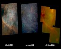 ![]() SOFIA Opens New Window On Star Formation In Orion A mid-infrared mosaic image from the SOFIA airborne observatory offers new information about processes of star formation in and around the nebula Messier 42, in the constellation Orion. The im ... more | .. |