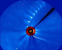 In an unexpected juxtaposition of cosmic objects that are actually quite far from each other, a newly released image from NASA's Wide-Field Infrared Survey Explorer (WISE) shows a dying star, called ... more