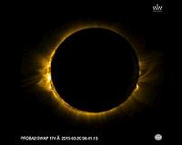 As last week's partial solar eclipse crossed Europe, it was also visible from space. ESA's Proba-2 captured a near-total eclipse from orbit, at the same time as its sister minisatellite Proba-V peer ... more