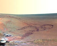 Opportunity is exploring 'Marathon Valley' on the rim of Endeavour crater. The rover is climbing up steep slopes to reach high-value science targets up on 'Knudsen Ridge.'