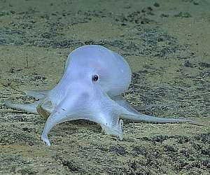 Last spring, researchers made Newly discovered 'Casper' octopod at risk from deep-sea minings with the discovery of what was surely a new species of octopod, crawling along the seafloor at a record-breaking ocean depth of more than 4,000 meters (about 2.5 miles) off Necker Island near Hawaii. The octopod's colorless and squishy appearance immediately inspired the nickname "Casper."