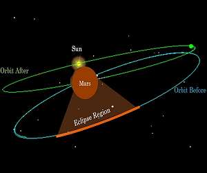 An orbital manoeuvres was performed on Mars Orbiter Mission (MOM) spacecraft to avoid the impending long eclipse duration for the satellite. The duration of the eclipse would have been as long as 8 hours in the coming days.