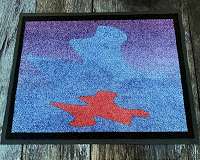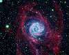 Dubbed the "Cosmic Welcome Mat" it features swirls of red, sky blue, and violet against a black border, and is meant to convey a warm reception to all sentient life in the universe.