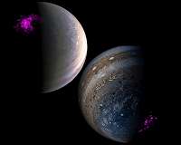 Jupiter's intense northern and southern lights, or auroras, behave independently of each other according to a new study using NASA's Chandra X-ray and ESA's XMM-Newton observatories. Using XMM-Newton and Chandra X-ray observations from March 2007 and May and June 2016, a team of researchers produced maps of Jupiter's X-ray emissions (shown in inset) and identified an X-ray hot spot at each pole. ... more Mountain View CA (SPX) Nov 07, 2017Help Nickname New Horizons' Next Flyby Target Pasadena CA (JPL) Nov 03, 2017Juno Aces 8th Science Pass of Jupiter, Names New Project Manager London UK (SPX) Oct 31, 2017Jupiter's X-ray auroras pulse independently |