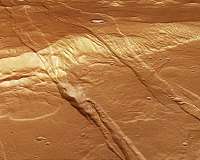 ESA's Mars Express has imaged striking features on Mars were caused by the planet's crust stretching apart in response to ancient volcanic activity.