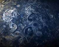 The Juno spacecraft captured this image when the spacecraft was only 11,747 miles (18,906 kilometers) from the tops of Jupiter's clouds - that's roughly as far as the distance between New York City and Perth, Australia.