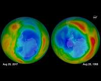 Each year, ozone-depleting compounds in the upper atmosphere destroy the protective ozone layer, and in particular above Antarctica. The ozone layer acts as Earth's sunscreen by absorbing harmful ultraviolet radiation from incoming sunlight that can cause skin cancer and damage plants, among other harmful effects to life on Earth.