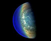 You are entering the Jovian Twilight ZonePasadena CA (JPL) Mar 06, 2018 This image captures the swirling cloud formations around the south pole of Jupiter, looking up toward the equatorial region. NASA's Juno spacecraft took the color-enhanced image during its ele ... more