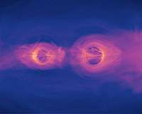 A new model is bringing scientists a step closer to understanding the kinds of light signals produced when two supermassive black holes, which are millions to billions of times the mass of the Sun, spiral toward a collision. For the first time, a new computer simulation that fully incorporates the physical effects of Einstein's general theory of relativity shows that gas in such systems will glo ... more |