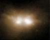 Two galaxies, drawn together by the force of gravity, are merging into a tangled mass of dense gas and dust. Structure is giving way to chaos, but hiding behind this messy cloud of material are two supermassive black holes, nestled at the center of each of the galaxies, that are now excitingly close, giving astronomers the best view yet of the pair marching toward coalescence into one mega black ... more |