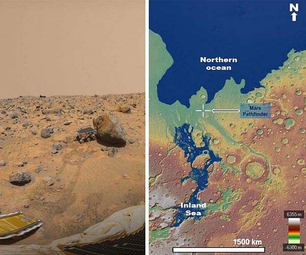 Pathfinder Rover May Have Explored Edges of Early Mars Sea in 1997![]() Tucson AZ (SPX) Mar 15, 2019 NASA's first rover mission to Mars, the Pathfinder, imaged an extraterrestrial marine spillover landscape 22 years ago, according to a new paper by Planetary Science Institute Senior Scientist Alexis Rodriguez. The landing site is on the spillway of an ancient sea that experienced catastrophic floods released from the planet's subsurface and its sediments. This could potentially yield evidence of Martian habitability, said Rodriguez, lead author on "The 1997 Mars Pathfinder Spacecraft Landing Site ... read more |