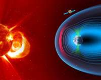 High-energy shock waves driven by solar flares and coronal mass ejections of plasma from the sun erupt throughout the solar system, unleashing magnetic space storms that can damage satellites, disrupt cell phone service and blackout power grids on Earth. Also driving high-energy waves is the solar wind - plasma that constantly flows from the sun and buffets the Earth's protective magnetic field. ... more |
