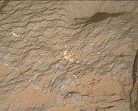 Curiosity was parked amongst beautiful, rhythmically layered bedrock in our previous workspace. The term rhythmic is used to describe fine scale, repeating layers that exhibit a uniform spacing and thickness. This bedrock was exposed just above the marker band that we had been investigating for several sols prior.