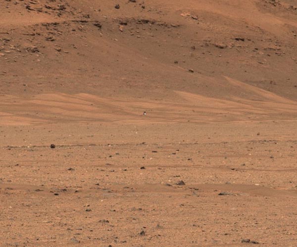 NASA's Perseverance Mars Rover took an image on December 18th, 2022, during its 650th day of mission that captured the Mars Helicopter Ingenuity near the base of Jezero Crater's river delta, approximately 1,115 feet (340 meters) away from the rover. The image was captured using the left camera of Mastcam-Z with an RGB color filter and the middle of its seven zoom settings, at a focal length of 6 ... more |