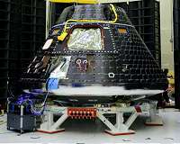 Artemis II crew inspect Orion capsule with media in towKennedy Space Center FL (SPX) Aug 08, 2023 Earlier today, journalists from all over the world got to meet the Artemis II Crew and their Orion Crew Module, which will send them on a journey around the Moon and back to earth no earlier than No ... more