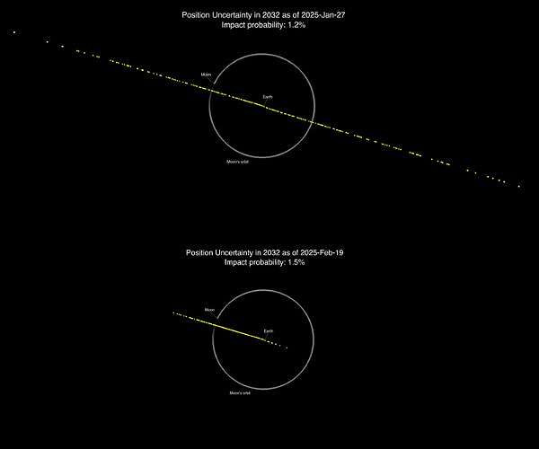 NASA raises chance for asteroid to hit moon![]() Washington DC (UPI) Jun 19, 2025 NASA has announced that an asteroid about 200 feet in diameter is now slightly more likely to crash into the moon. According to the newest data collected, NASA's Center for Near-Earth Object Studies at the agency's Jet Propulsion Laboratory has refined the expected course for Asteroid 2024 YR4 and has given it an increased 4.3% probability of striking the moon on Dec. 22, 2032. The original likelihood was at 3.8% probability. The space rock is too far off in space to be detected w ... read more |
