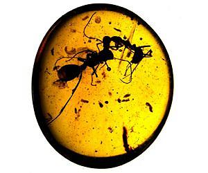 Fighting ants, giant solider termites, and foraging worker ants recently discovered in 100-million-year-old amber provide direct evidence for advanced social behavior in ancient ants and termites--two groups that are immensely successful because of their ability to organize in hierarchies. The new work, led by scientists at the American Museum of Natural History and the University of Kansas, and published in two papers in the journal Current Biology, proves that advanced sociality in ants and termites was present tens of millions of years earlier than indicated by the previous fossil record. "Ecologically, advanced sociality is one of the most important adaptive features for animals," said co-author Dave Grimaldi, a curator in the Museum's Division of Invertebrate Zoology. "All ants and termites are social, and they are ubiquitous across terrestrial landscapes, with thousands of described species and probably even more that we haven't yet found." Advanced sociality, or eusociality, a hallmark of which is reproductive specialization into worker and queen castes, is essentially a phenomenon of the group of invertebrates known as arthropods. Queens and reproductive males take the roles as the sole reproducers while the soldiers and workers defend and care for the colony. Eusociality occurs in a range of arthropods, from some shrimp, beetles, and aphids, to various wasps, though the phenomenon is nowhere more pronounced than in honey bees, ants, and termites. (Among vertebrates, eusociality is found in just two species of African mole rats.) Eusociality is thought to have appeared first in termites in the Late Jurassic, about 150-160 million years ago. However, before the new work, the earliest termites ever found that could definitively be tied to a caste system were from the Miocene, a mere 20 to 17 million years ago. A similar story held true for ants, whose evolutionary history with eusociality was also thought to be long, but only weakly supported by the fossil record. "In the Cretaceous amber we examine, the ants and termites represent the earliest branches of each evolutionary tree, and the species are wildly different from what their modern relatives look like today," said co-author Phillip Barden, a recent graduate of the comparative biology doctoral program at the Museum's Richard Gilder Graduate School and a National Science Foundation Postdoctoral Fellow at Rutgers University. "We wanted to know how social these creatures were, if they were social at all." A number of spectacular pieces of amber recently recovered from Myanmar gave Barden, Grimaldi, and their colleagues a clear answer: Eusociality was going strong in both groups during the Cretaceous. In termites, the researchers made this determination based on the diverse anatomy of the animals, indicating the presence of castes. They found six different termite species preserved in the amber, two of which are new to science: Krishnatermes yoddha, comprising workers, reproductives, and soldiers; and Gigantotermes rex, based on one of the largest soldier termites ever found--about an inch in length, half of it being its head, with scissor-like jaws. The amber ant fossils froze a number of eusocial behaviors in time. Those include: the presence of different castes, including queen ants and workers; groups of worker ants in single pieces of amber, probably nestmates foraging together; and two workers of different ant species engaging in combat. "We know that wingless solitary relatives of ants don't fight or defend territories against other species," Barden said. "But modern ants war all of the time. The behavior of these fossil ants, frozen for 100 million years, resolves any ambiguity regarding sociality and diversity in the earliest ants." Other authors on this work include Michael S. Engel, a professor at the University of Kansas and a research associate at the Museum; and Mark Riccio, from Cornell University.