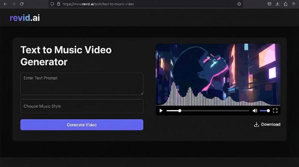 The interface feels like a guided setup. Paste verses, tag the chorus, and choose a visual mode: AI-generated clips, curated stock, or your own footage. Revid then slices the song into scenes, giving you a structure that already moves with the music.