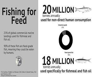 Every year for the past 60 years, an average of 20 million tonnes of fish caught in the global ocean have not been used to nourish people. A new study emerging from the Sea Around Us project at the University of British Columbia's Institute for the Oceans and Fisheries reveals that from 1950 to 2010, 27 per cent of commercial marine landings were diverted to uses other than direct human consumption. This trend has not changed in recent years and it poses serious questions regarding food security, as most of the diverted fish are classified as food-grade or prime food-grade. Out of the grand total, 18 million tonnes of fish have been being used specifically in the production of fishmeal and fish oil, which are commonly fed to aquaculture and livestock species. According to Tim Cashion, a researcher at the Sea Around Us and lead author of the study "Most fish destined for fishmeal production are food-grade fish" published in Fish and Fisheries, the use of prime fish resources to artificially feed farmed fish, pigs and chicken is a cause of concern as fish are an important source of nutrients and animal protein for 2.9 billion people across the world. Furthermore, fish used to feed other fish are often sourced in the waters of developing countries, which puts pressure on their fish stocks and reduces locals' access to fresh seafood. In general, these food-insecure communities are also denied access to final aquaculture products because most of those products are exported to developed countries. On top of this, Cashion and his co-authors, Daniel Pauly, Dirk Zeller, and Frederic LeManach, also found that there is an increase in the variety of fish being used for non-direct human consumption. This trend is mostly fueled by the growth of fed aquaculture in Southeast Asia and China and the depletion of overfished stocks of former target species. The analysis is based on information extracted from the Sea Around Us global database, specifically the reconstructed commercial landings data (industrial and artisanal) by taxon for each fishing country for each year from 1950-2010.
