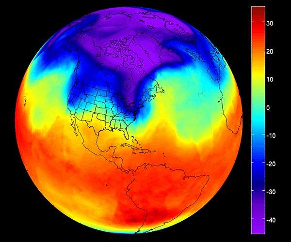 The U.S. Midwest has been gripped by the lowest temperatures it has seen in years. An unusually cold Arctic air mass, called a polar vortex, is responsible for the severe temperatures, which in many areas have plunged well below 0 degrees Fahrenheit (-18 degrees Celsius). NASA's Atmospheric Infrared Sounder (AIRS) instrument aboard the Aqua satellite captured the polar vortex as it moved southward from central Canada into the U.S. Midwest from Jan. 20 through Jan. 29. The lowest temperatures are shown in purple and blue and range from -40 degrees Fahrenheit (also -40 degrees Celsius) to -10 degrees Fahrenheit (-23 degrees Celsius). As the data series progresses, you can see how the coldest purple areas of the air mass scoop down into the U.S. The polar vortex is responsible for a number of deaths, disruptions to services, and energy outages in the affected areas. AIRS, in conjunction with the Advanced Microwave Sounding Unit (AMSU), senses emitted infrared and microwave radiation from Earth to provide a three-dimensional look at Earth's weather and climate. Working in tandem, the two instruments make simultaneous observations down to Earth's surf ace. With more than 2,000 channels sensing different regions of the atmosphere, the system creates a global, three-dimensional map of atmospheric temperature and humidity, cloud amounts and heights, greenhouse gas concentrations and many other atmospheric phenomena. Launched into Earth orbit in 2002, the AIRS and AMSU instruments are managed by NASA's Jet Propulsion Laboratory in Pasadena, California, under contract to NASA. JPL is a division of the Caltech in Pasadena.