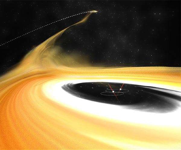 Scientists using the Atacama Large Millimeter/submillimeter Array (ALMA) and the Karl G. Jansky Very Large Array (VLA) made a rare detection of a likely stellar flyby event in the Z Canis Majoris (Z CMa) star system. An intruder-not bound to the system-object came in close proximity to and interacted with the environment surrounding the binary protostar, causing the formation of chaotic, stretched-out streams of dust and gas in the disk surrounding it. While such intruder-based flyby events have previously been witnessed with some regularity in computer simulations of star formation, few convincing direct observations have ever been made, and until now, the events have remained largely theoretical. "Observational evidence of flyby events is difficult to obtain because these events happen fast and it is difficult to capture them in action. What we have done with our ALMA Band 6 and VLA observations is equivalent to capturing lightning striking a tree," said Ruobing Dong, an astronomer at the University of Victoria in Canada and the principal investigator on the new study. "This discovery shows that close encounters between young stars harboring disks do happen in real life, and they are not just theoretical situations seen in computer simulations. Prior observational studies had seen flybys, but hadn't been able to collect the comprehensive evidence we were able to obtain of the event at Z CMa." Perturbations, or disturbances, like those at Z CMa aren't typically caused by intruders, but rather by sibling stars growing up together in space. Hau-Yu Baobab Liu, an astronomer at the Institute of Astronomy and Astrophysics at Academia Sinica in Taiwan and a co-author on the paper, said, "Most often, stars do not form in isolation. The twins, or even triplets or quadruplets, born together may be gravitationally attracted and, as a result, closely approach each other. During these moments, some material on the stars' protoplanetary disks may be stripped off to form extended gas streams that provide clues to astronomers about the history of past stellar encounters." Nicolas Cuello, an astrophysicist and Marie Curie Fellow at Universite Grenoble Alpes in France and a co-author on the paper added that in the case of Z CMa, it was the morphology, or structure, of these streams that helped scientists to identify and pinpoint the intruder. "When a stellar encounter occurs, it causes changes in disk morphology-spirals, warps, shadows, etc.-that could be considered as flyby fingerprints. In this case, by looking very carefully at Z CMa's disk, we revealed the presence of several flyby fingerprints." These fingerprints not only helped scientists to identify the intruder but also led them to consider what these interactions might mean for the future of Z CMa and the baby planets being born in the system, a process that so far has remained a mystery to scientists. "What we now know with this new research is that flyby events do occur in nature and that they have major impacts on the gaseous circumstellar disks, which are the birth cradles of planets, surrounding baby stars," said Cuello. "Flyby events can dramatically perturb the circumstellar disks around participant stars, as we've seen with the production of long streamers around Z CMa." Liu added, "These perturbers not only cause gaseous streams but may also impact the thermal history of the involved host stars, like Z CMa. This can lead to such violent events as accretion outbursts, and also impact the development of the overall star system in ways that we haven't yet observed or defined." Dong said that studying the evolution and growth of young star systems throughout the galaxy helps scientists to better understand our own Solar System's origin. "Studying these types of events gives a window into the past, including what might have happened in the early development of our own Solar System, critical evidence of which is long since gone. Watching these events take place in a newly forming star system provides us with the information needed to say, 'Ah-ha! This is what may have happened to our own Solar System long ago.' Right now, VLA and ALMA have given us the first evidence to solve this mystery, and the next generations of these technologies will open windows on the Universe that we have yet only dreamed of." Recently, the National Radio Astronomy Observatory (NRAO) received approval for its Central Development Laboratory (CDL) to develop a multi-million dollar upgrade to ALMA's Band 6 receiver, and the Observatory's next-generation VLA (ngVLA) received strong support from the astronomical community in the Astro2020 Decadal Survey. Technological advancements for both telescopes will lead to better observations, and a potentially significant increase in the discovery of difficult-to-see objects, like Z CMa's stellar intruder. Both projects are funded in part by the National Science Foundation (NSF). "These observations highlight the synergy that can come from a newer instrument working in concert with a more seasoned one, and how good a workhorse the ALMA Band 6 receiver is," said Dr. Joe Pesce, astrophysicist and ALMA Program Director at the NSF. "I look forward to the even-better results the upgraded ALMA Band 6 receiver will enable."