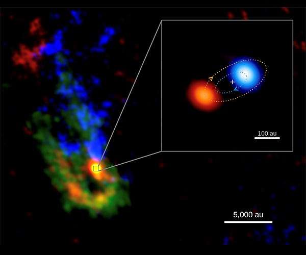 A team of astronomers, among them Jonathan Tan (Chalmers) have made new observations with ALMA of a molecular cloud that is collapsing to form two massive protostars that will eventually become a binary star system. While it is known that most massive stars possess orbiting stellar companions it has been unclear how this comes about. Are the stars born together from a common, spiraling gas disk at the center of a collapsing cloud, or do they pair up later by chance encounters in a crowded star cluster? Understanding the dynamics of forming binaries has been difficult because the protostars in these systems are still enveloped in a thick cloud of gas and dust that prevents most light from escaping. Fortunately, it is possible to see them using radio waves, as long as they can be imaged with sufficiently high spatial resolution. In the current research, published in Nature Astronomy, the researchers led by Yichen Zhang (RIKEN Cluster for Pioneering Research, Japan) and Jonathan Tan (Chalmers and University of Virginia), used the Atacama Large Millimeter/submillimeter Array (ALMA) telescope array in northern Chile to observe, at high spatial resolution, a star-forming region known as IRAS 07299-1651, which is located about 5,500 light-years (1.68 kiloparsecs) away in the constellation Puppis. The observations showed that already at this early stage, the cloud contains two objects, a massive "primary" central star and another "secondary" forming star, also of high mass. For the first time, the research team were able to use these observations to deduce the dynamics of the system. The observations showed that the two forming stars are quite far apart, separated by a distance of about 180 astronomical units (180 times the distance from the Earth to the Sun). They are currently orbiting each other with a period of at most 600 years, and have a total mass at least 18 times that of our Sun. "This is an exciting finding because we have long been perplexed by the question of whether stars form into binaries during the initial collapse of the star-forming cloud or whether they are created during later stages. Our observations clearly show that the division into binary stars takes place early on, while they are still in their infancy," says Yichen Zhang. Another finding of the study was that the binary stars are being nurtured from a common disk fed by the collapsing cloud and favoring a scenario in which the secondary star of the binary formed as a result of fragmentation of the disk originally around the primary. This allows the initially smaller secondary protostar to "steal" infalling matter from its sibling. Eventually they should emerge as quite similar "twins." "This is an important result for understanding the birth of massive stars. Such stars are important throughout the universe, not least for producing, at the ends of their lives, the heavy elements that make up our Earth and are in our bodies," says Jonathan Tan. "What is important now is to look at other examples to see whether this is a unique situation or something that is common for the birth of all massive stars," concludes Yichen Zhang.