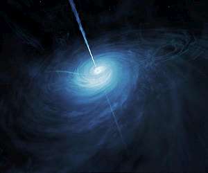 Energy Loss Gives Insights into Evolution of Quasar Jets Dwingeloo, The Netherlands (SPX) Mar 19, 2019 An international team of astrophysicists observed for the first time that the jet of a quasar is less powerful at long radio wavelengths than earlier predicted. This discovery gives new insights in the evolution of quasar jets. They made this observation using the international Low Frequency Array (LOFAR) telescope, which produced high-resolution radio images of quasar 4C+19.44 located over 5 billion light-years from Earth. Supermassive black holes, many millions of times more massive than our Sun ... read more