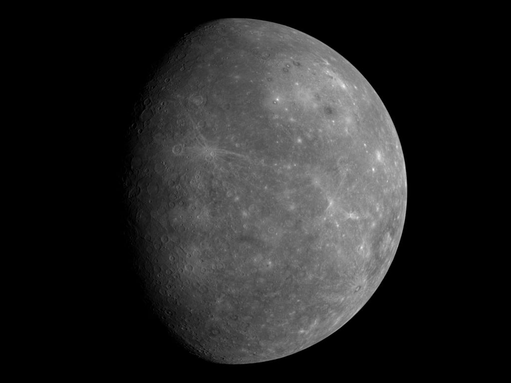 Laurel MD (APL) Jan 15, 2008 When Mariner 10 flew past Mercury three times in 1974 and 1975, the same hemisphere was in sunlight during each encounter. As a consequence, Mariner 10 was able to image less than half the planet. Planetary scientists have wondered for more than 30 years about what spacecraft images might reveal about the hemisphere of Mercury that Mariner 10 never viewed. On January 14, 2008, the MESSENGER spacecraft observed about half of the hemisphere missed by Mariner 10. This image was snapped by the Wide Angle Camera, part of the Mercury Dual Imaging System (MDIS) instrument, about 80 minutes after MESSENGER's closest approach to Mercury (2:04 pm EST), when the spacecraft was at a distance of about 27,000 kilometers (about 17,000 miles). The image shows features as small as 10 kilometers (6 miles) in size. This image was taken through a filter sensitive to light near the red end of the visible spectrum (750 nm), one of a sequence of images taken through each of MDIS's 11 filters. Like the previously mapped portion of Mercury, this hemisphere appears heavily cratered. It also reveals some unique and distinctive features. On the upper right is the giant Caloris basin, including its western portions never before seen by spacecraft. Formed by the impact of a large asteroid or comet, Caloris is one of the largest, and perhaps one of the youngest, basins in the Solar System. The new image shows the complete basin interior and reveals that it is brighter than the surrounding regions and may therefore have a different composition. Darker smooth plains completely surround Caloris, and many unusual dark-rimmed craters are observed inside the basin. Several other multi-ringed basins are seen in this image for the first time. Prominent fault scarps (large ridges) lace the newly viewed region. Other images obtained during the flyby will reveal surface features in color and in much more detail. Collectively, these images and measurements made by other MESSENGER instruments will soon provide a detailed global view of the surface of Mercury, yielding key information for understanding the formation and geologic history of the innermost planet. Community Email This Article Comment On This Article Related Links Messenger at APL News Flash at Mercury Mars News and Information at MarsDaily.com Lunar Dreams and more