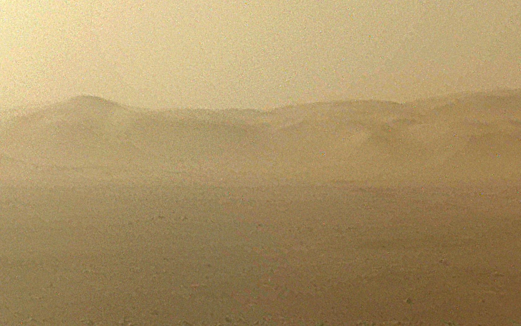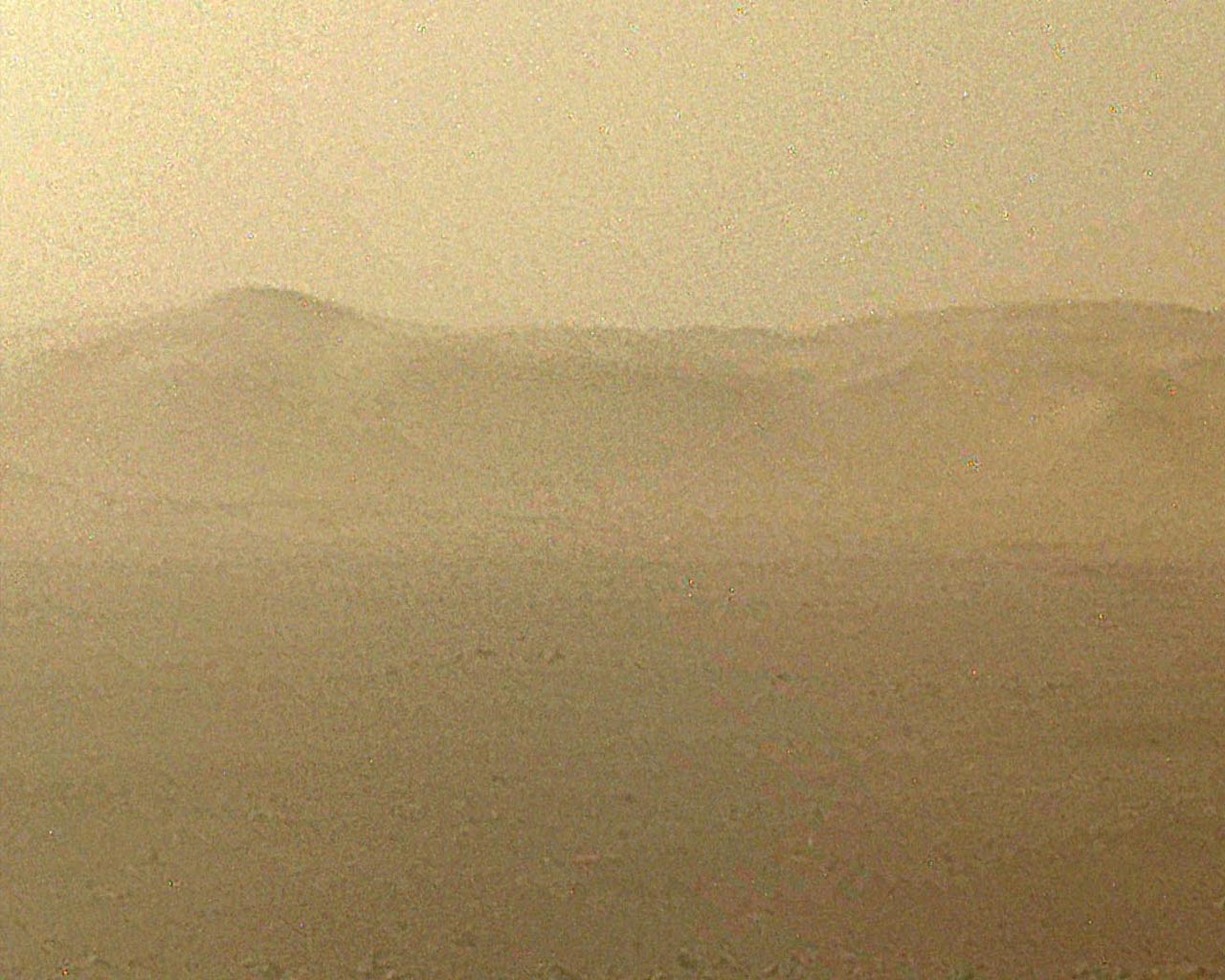 This picture of the Martian landing site of NASA's Curiosity rover puts a color view obtained by the rover in the context of a computer simulation derived from images acquired from orbiting spacecraft. The view looks north, showing a distant ridge that is the north wall and rim of Gale Crater. The color image was obtained by Curiosity's Mars Hand Lens Imager (MAHLI) on Aug. 6 PDT (Aug. 7 UTC), the first Martian day after Curiosity's landing on Aug. 5 PDT (Aug. 6 UTC). It has been rendered about 10 percent transparent so that scientists can see how it matches the simulated terrain in the background. The MAHLI image was taken while the camera's transparent dust cover was still on. Curiosity's descent coated the cover with a thin film of dust. The computer simulation is a digital elevation model that incorporates data from the High Resolution Imaging Science Experiment (HiRISE) and Context Camera on NASA's Mars Reconnaissance Orbiter and the High Resolution Stereo Camera on ESA's Mars Express. The peak seen on the left-side of the MAHLI image is about 15 miles (24 kilometers) distant with a height of about 3,775 feet (1,150 meters) high. The box with arrows at the upper left indicates direction. The arrow pointing up is 'up' with respect to the gravity of Mars. The arrow pointing to the right is east. North would be an arrow pointing into the image (that is, the MAHLI view is toward the north). The MAHLI is located on the turret at the end of Curiosity's robotic arm. At the time the MAHLI image was acquired, the robotic arm was in its stowed position. It has been stowed since the rover was packaged for its Nov. 26, 2011, launch. When the robotic arm, turret and MAHLI are stowed, the MAHLI is in a position that is rotated 30 degrees relative to the rover deck. The MAHLI image shown here has been rotated to correct for that tilt, so that the sky is 'up' and the ground is 'down.' Here, MAHLI is looking out from the front left side of the rover. This is much like the view from the driver's side of cars sold in the U.S. The main purpose of Curiosity's MAHLI camera is to acquire close-up, high-resolution views of rocks and soil at the rover's Gale Crater field site. The camera is capable of focusing on any target at distances of about 0.8 inch (2.1 centimeters) to infinity. This means it can, as shown here, also obtain pictures of the Martian landscape. This was the first time the MAHLI focus mechanism was operated since before launch and it performed flawlessly.'