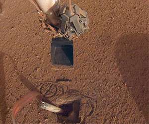 Mars InSight Lander to push on top of the 'Mole' Pasadena CA (JPL) Feb 24, 2020 After nearly a year of trying to dig into the Martian surface, the heat probe belonging to NASA's InSight lander is about to get a push. The mission team plans to command the scoop on InSight's robotic arm to press down on the "mole," the mini pile driver designed to hammer itself as much as 16 feet (5 meters) down. They hope that pushing down on the mole's top, also called the back cap, will keep it from backing out of its hole on Mars, as it did twice in recent months after nearly burying itself. ... read more