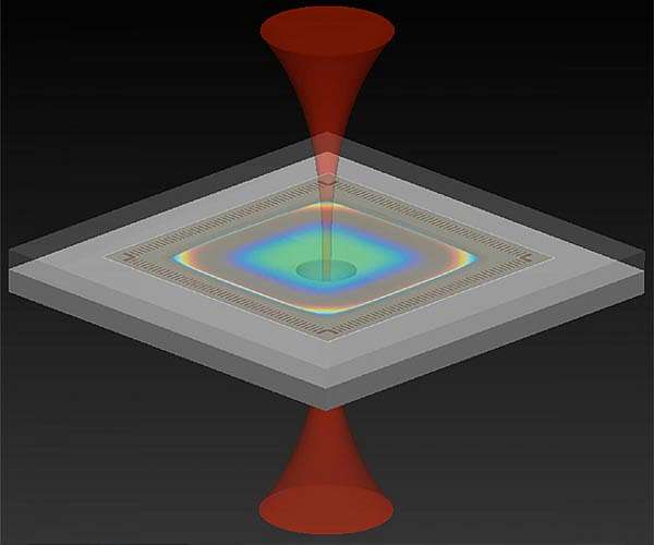 You're going at the speed limit down a two-lane road when a car barrels out of a driveway on your right. You slam on the brakes, and within a fraction of a second of the impact an airbag inflates, saving you from serious injury or even death. The airbag deploys thanks to an accelerometer - a sensor that detects sudden changes in velocity. Accelerometers keep rockets and airplanes on the correct flight path, provide navigation for self-driving cars, and rotate images so that they stay right-side up on cellphones and tablets, among other essential tasks. Addressing the increasing demand to accurately measure acceleration in smaller navigation systems and other devices, researchers at the National Institute of Standards and Technology (NIST) have developed an accelerometer a mere millimeter thick that uses laser light instead of mechanical strain to produce a signal. Although a few other accelerometers also rely on light, the design of the NIST instrument makes the measuring process more straightforward, providing higher accuracy. It also operates over a greater range of frequencies and has been more rigorously tested than similar devices. Not only is the NIST device, known as an optomechanical accelerometer, much more precise than the best commercial accelerometers, it does not need to undergo the time-consuming process of periodic calibrations. In fact, because the instrument uses laser light of a known frequency to measure acceleration, it may ultimately serve as a portable reference standard to calibrate other accelerometers now on the market, making them more accurate. The accelerometer also has the potential to improve inertial navigation in such critical systems as military aircraft, satellites and submarines, especially when a GPS signal is not available. NIST researchers Jason Gorman, Thomas LeBrun, David Long and their colleagues describe their work in the journal Optica. This animation demonstrates the operating principles of a new accelerometer. This optomechanical accelerometer consists of two silicon chips. The first chip has a proof mass suspended by a set of silicon beams, which allows the proof mass to move vertically. The top of the mass has a mirrored coating. The second chip has an inset hemispherical mirror. Together the mass and hemisphere mirrors form an optical cavity. Infrared laser light is directed into the device. Most frequencies are reflected entirely. However, light matching the resonant frequency builds up inside the cavity, increasing in intensity, until the intensity of the light transmitted by the cavity matches the input. Light transmitted by the cavity can be detected on the other side. When the device accelerates, the length of the cavity changes, shifting the resonant frequency. By continuously matching the laser to the resonant frequency of the cavity, researchers can determine the acceleration of the device. Animation: Sean Kelley/NIST The study is part of NIST on a Chip, a program that brings the institute's cutting-edge measurement-science technology and expertise directly to users in commerce, medicine, defense and academia. Accelerometers, including the new NIST device, record changes in velocity by tracking the position of a freely moving mass, dubbed the "proof mass," relative to a fixed reference point inside the device. The distance between the proof mass and the reference point only changes if the accelerometer slows down, speeds up or switches direction. The same is true if you're a passenger in a car. If the car is either at rest or moving at constant velocity, the distance between you and the dashboard stays the same. But if the car suddenly brakes, you're thrown forward and the distance between you and the dashboard decreases. The motion of the proof mass creates a detectable signal. The accelerometer developed by NIST researchers relies on infrared light to measure the change in distance between two highly reflective surfaces that bookend a small region of empty space. The proof mass, which is suspended by flexible beams one-fifth the width of a human hair so that it can move freely, supports one of the mirrored surfaces. The other reflecting surface, which serves as the accelerometer's fixed reference point, consists of an immovable microfabricated concave mirror. Together, the two reflecting surfaces and the empty space between them form a cavity in which infrared light of just the right wavelength can resonate, or bounce back and forth, between the mirrors, building in intensity. That wavelength is determined by the distance between the two mirrors, much as the pitch of a plucked guitar depends on the distance between the instrument's fret and bridge. If the proof mass moves in response to acceleration, changing the separation between the mirrors, the resonant wavelength also changes. To track the changes in the cavity's resonant wavelength with high sensitivity, a stable single-frequency laser is locked to the cavity. As described in a recent publication in Optics Letters, the researchers have also employed an optical frequency comb - a device that can be used as a ruler to measure the wavelength of light - to measure the cavity length with high accuracy. The markings of the ruler (the teeth of the comb) can be thought of as a series of lasers with equally spaced wavelengths. When the proof mass moves during a period of acceleration, either shortening or lengthening the cavity, the intensity of the reflected light changes as the wavelengths associated with the comb's teeth move in and out of resonance with the cavity. Accurately converting the displacement of the proof mass into an acceleration is a critical step that has been problematic in most existing optomechanical accelerometers. However, the team's new design ensures that the dynamic relationship between the displacement of the proof mass and the acceleration is simple and easy to model through first principles of physics. In short, the proof mass and supporting beams are des