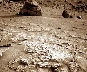 A Rover-Sized Boulder Sols 3532-3533 Pasadena CA (JPL) Jul 17, 2022 Curiosity is back on the road, but some interesting boulders caught our attention and led to a short detour. The team was already planning to divert to the southwest to get some imaging of nearby cliffs, but the large boulders that have tumbled down provide a tantalizing glimpse of what's to come. Boulders like the large one shown in the above Navcam image (now named "Ilha Novo Destino") can help inform our understanding of the upcoming stratigraphy, so we thought it was worth a trip to this "new ... read more