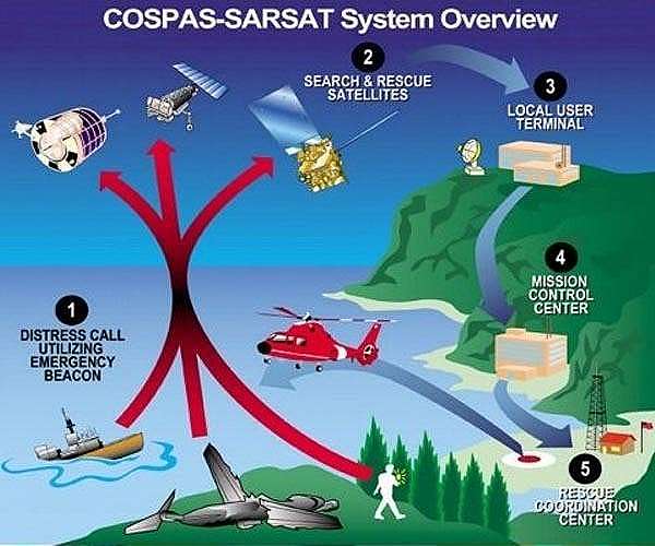 The humanitarian initiative in space Distress beacons are fundamentally radio transmitters that can be activated in emergencies, either manually by pressing a button or automatically upon detection certain triggers - a physical shock, contact with water, a sudden drop in altitude etc. The Cospas-Sarsat system detects radio transmissions in the protected 406-MHz frequency band, gathering information on the type of vessel in distress and relaying its signals to ground stations on Earth known as Local User Terminals (LUTs). While some beacons contain the location of the vessel in question, many don't, and for these ground stations must perform a mathematical analysis to determine the location of the beacon. Many satellites in low, medium and Geostationary orbit carry 'repeater instruments' which shift the frequency of the 406 MHz beacon transmissions to a different frequency in order to avoid interference with the original transmissions. The so-called 'upconverted' signals are sent to User Terminals where they are processed and decoded. Once verified, beacon information is forwarded to the nearest Rescue Coordination Centre.