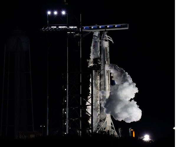 The four-person crew took off from the historic Launch Pad 39A (LC-39A) at KSC at 3:27 a.m. EDT (0727 UTC) Saturday, almost a day later than previously scheduled to allow for "additional time to reconfirm required factors of safety and operational margin on one of the Dragon spacecraft's environmental control and life support system (ECLSS) components," NASA wrote in an update.