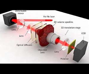 The potential applications of three-dimensional (3D) digital holograms are enormous. In addition to arts and entertainment, various fields including biomedical imaging, scientific visualization, engineering design, and displays could benefit from this technology. For example, creating full-sized organs for 3D analysis by doctors could be helpful, but it remained a challenge owing to the limitation of hologram-generation techniques. A research team led by Professor YongKeun Park of the Physics Department at the Korea Advanced Institute of Science and Technology (KAIST) has come up with a solution and developed a 3D holographic display that performs more than 2,600 times better than existing 3D holographic displays. This study is expected to improve the limited size and viewing angle of 3D images, which were a major problem of the current holographic displays. The study was published online in Nature Photonics on January 23, 2017. 3D holograms, which often appear in science fiction films, are a familiar technology to the public, but holograms in movies are created with computer graphic effects. Methods for creating true 3D holograms are still being studied in the laboratory. For example, due to the difficulty of generating real 3D images, recent virtual reality (VR) and augmented reality (AR) devices project two different two-dimensional (2D) images onto a viewer to induce optical illusions. To create a 3D hologram that can be viewed without special equipment such as 3D glasses, the wavefront of light must be controlled using wavefront modulators such as spatial light modulators (SLMs) and deformable mirrors (DMs). A wavefront modulator is an optical manipulation device that can control the direction of light propagation. However, the biggest limitation to using these modulators as 3D displays is the number of pixels. The large number of pixels that are packed into high-resolution displays developed in recent years are suitable for a 2D image, and the amount of information contained in those pixels cannot produce a 3D image. For this reason, a 3D image that can be made with existing wavefront modulator technology is 1 cm in size with a narrow viewing angle of 3 degrees, which is far from practicable. As an alternative, KAIST researchers used a DM and added two successive holographic diffusers to scatter light. By scattering light in many directions, this allows for a wider viewing angle and larger image, but results in volume speckle fields, which are caused by the interference of multiple scattered light. Random volume speckle fields cannot be used to display 3D images. To fix the problem, the researchers employed a wavefront-shaping technique to control the fields. As a result, they succeeded in producing an enhanced 3D holographic image with a viewing angle of 35 degrees in a volume of 2 cm in length, width, and height. This yielded a performance that was about 2,600 times stronger than the original image definition generated when they used a DM without a diffuser. Professor Park said, "Scattering light has previously been believed to interfere with the recognition of objects, but we have demonstrated that current 3D displays can be improved significantly with an increased viewing angle and image size by properly controlling the scattered light." Hyeonseung Yu, who is the lead author of this research article and a doctoral candidate in the Department of Physics, KAIST, noted that this technology signals a good start to develop a practical model for dynamic 3D hologram displays that can be enjoyed without the need for special eyeglasses. "This approach can also be applied to AR and VR technology to enhance the image resolution and viewing angles," added Yu. Research paper: "Ultrahigh-definition Dynamic 3D Holographic Display by Active Control of Volume Speckle Fields."