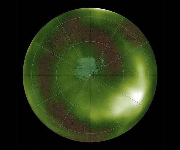 NASA's MAVEN observes Martian night sky pulsing in ultraviolet light Greenbelt MD (SPX) Aug 07, 2020 Vast areas of the Martian night sky pulse in ultraviolet light, according to images from NASA's MAVEN spacecraft. The results are being used to illuminate complex circulation patterns in the Martian atmosphere. The MAVEN team was surprised to find that the atmosphere pulsed exactly three times per night, and only during Mars' spring and fall. The new data also revealed unexpected waves and spirals over the winter poles, while also confirming the Mars Express spacecraft results that this nightglow ... read more