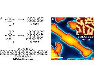 Few materials have received as much attention from the scientific world or have raised so many hopes with a view to their potential deployment in new applications as graphene has. This is largely due to its superlative properties: it is the thinnest material in existence, almost transparent, the strongest, the stiffest and at the same time the most strechable, the best thermal conductor, the one with the highest intrinsic charge carrier mobility, plus many more fascinating features. Specifically, its electronic properties can vary enormously through its confinement inside nanostructured systems, for example. That is why ribbons or rows of graphene with nanometric widths are emerging as tremendously interesting electronic components. On the other hand, due to the great variability of electronic properties upon minimal changes in the structure of these nanoribbons, exact control on an atomic level is an indispensable requirement to make the most of all their potential. The lithographic techniques used in conventional nanotechnology do not yet have such resolution and precision. In the year 2010, however, a way was found to synthesise nanoribbons with atomic precision by means of the so-called molecular self-assembly. Molecules designed for this purpose are deposited onto a surface in such a way that they react with each other and give rise to perfectly specified graphene nanoribbons by means of a highly reproducible process and without any other external mediation than heating to the required temperature. In 2013 a team of scientists from the University of Berkeley and the Centre for Materials Physics (CFM), a mixed CSIC (Spanish National Research Council) and UPV/EHU (University of the Basque Country) centre, extended this very concept to new molecules that were forming wider graphene nanoribbons and therefore with new electronic properties. This same group has now managed to go a step further by creating, through this self-assembly, heterostructures that blend segments of graphene nanoribbons of two different widths. The forming of heterostructures with different materials has been a concept widely used in electronic engineering and has enabled huge advances to be made in conventional electronics. "We have now managed for the first time to form heterostructures of graphene nanoribbons modulating their width on a molecular level with atomic precision. What is more, their subsequent characterisation by means of scanning tunnelling microscopy and spectroscopy, complemented with first principles theoretical calculations, has shown that it gives rise to a system with very interesting electronic properties which include, for example, the creation of what are known as quantum wells," pointed out the scientist Dimas de Oteyza, who has participated in this project. This work, the results of which are being published this very week in the prestigious journal Nature Nanotechnology, therefore constitutes a significant success towards the desired deployment of graphene in commercial electronic applications. Dr Dimas G. de Oteyza, who was previously at Berkeley and at the CFM, is currently working at the Donostia International Physics Center (DIPC) as a Fellow Gipuzkoa. The Fellows Gipuzkoa programme, funded by the Chartered Provincial Council of Gipuzkoa, is in fact devoted to bringing back young researchers with solid post-doctoral training in internationally prestigious groups and centres, by offering them a platform for reincorporation through contracts with a duration of up to five years, which enables them to compete in the best of conditions to obtain tenured positions as researchers in our country.