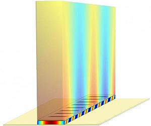Distributed feedback through periodic gratings "There are two main reasons for giving lasers a periodic structure," says Kumar. "The first is to improve spectral selectivity. A laser can emit light in several closely spaced wavelengths, or colors. But a laser with a periodic structure can be forced to emit light at just one wavelength by the mechanism of spectral filtering. Such a spectrally pure, single-mode laser is often indispensable for many applications. "A periodic structure can also enhance the quality of the laser beam by channeling light intensely into a tight spot. Such narrow beam lasers can deliver light energy to a location where it is needed most. They can shine for long distances, and are easier to manipulate and re-direct at a desired location using small optical components." Many DFB schemes have been developed for different types of lasers. Because plasmonic lasers are relatively new, research to improve them using periodic photonic structures is still in its early stages. Kumar describes his DFB scheme in the terminology of a microwave engineering principle called the phased-array antenna. These antennas are used to achieve high directivity (narrow beam) in radar and satellite communications. Phased arrays are also implemented in "microstrip transmission lines" that channel microwave signals onto printed circuit boards using metal films. "Our technique allows a plasmonic laser to radiate in a narrow beam, very much like a phased-array antenna," says Kumar. His group implemented DFB in the laser by making periodic slits or "gratings" in one of the metal claddings that encase the laser cavity. The laser's unique ability to emit a monochromatic, focused light beam stems from the degree of periodicity. "The period we choose depends on the desired wavelength of light from the laser, the refractive index of the cavity medium, and the refractive index of the surrounding medium," says Kumar. The group's DFB technique has two unique aspects. The chosen periodicity is the most important technical contribution and, says Kumar, is distinctly different from previously established DFB design rules for solid-state lasers. Second, the periodicity establishes an intense SPP wave which "hangs" in the surrounding medium of the laser's cavity while remaining tied to its metal cladding, and which propagates in tandem with another SPP wave inside the cavity. "All plasmonic lasers have SPPs inside their cavities," says Kumar. "Our laser also generates SPPs in the air, or any other medium that may surround the laser. This is something unique which cannot be found in any other laser yet demonstrated. "The large size of the SPP wave in the surrounding medium leads to a highly directive (narrow) radiation pattern from the plasmonic laser. This derives from the Fraunhofer diffraction formula in optics, which says the light-field distribution far from a light source (far-field) is the Fourier transform of the light-field distribution at the source (near-field). Effectively, when the near field is narrow, the far field is broad, and vice-versa. "We have created a near field with a large spatial extent; this implies a narrow far-field or a focused beam." Kumar and Wu have filed a patent application on their invention, which he says could help plasmonic lasers, especially terahertz QCLs with narrow beams, find commercial applications. "There is a very strong interest in security spectrometry," the researchers wrote in an abstract for the recent TechConnect 2016 World Innovation Conference, where they won a TechConnect National Innovation Award. "Approximately 80 to 95 percent of explosives, and all commonly used ones, have unique and identifiable terahertz signatures."