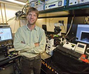 At the heart of the immune system that protects our bodies from disease and foreign invaders is a vast and complex communications network involving millions of cells, sending and receiving chemical signals that can mean life or death. At the heart of this vast cellular signaling network are interactions between billions of proteins and other biomolecules. These interactions, in turn, are greatly influenced by the spatial patterning of signaling and receptor molecules. The ability to observe signaling spatial patterns in the immune and other cellular systems as they evolve, and to study the impact on molecular interactions and, ultimately, cellular communication, would be a critical tool in the fight against immunological and other disorders that lead to a broad range of health problems including cancer. Such a tool is now at hand. Researchers with the U.S. Department of Energy (DOE)'s Lawrence Berkeley National Laboratory (Berkeley Lab) and the University of California (UC) Berkeley, have developed the first practical application of optical nanoantennas in cell membrane biology. A scientific team led by chemist Jay Groves has developed a technique for lacing artificial lipid membranes with billions of gold "bowtie" nanoantennas. Through the phenomenon known as "plasmonics," these nanoantennas can boost the intensity of a fluorescent or Raman optical signal from a protein passing through a plasmonic "hot-spot" tens of thousands of times without the protein ever being touched. "Our technique is minimally invasive since enhancement of optical signals is achieved without requiring the molecules to directly interact with the nanoantenna," Groves says. "This is an important improvement over methods that rely on adsorption of molecules directly onto antennas where their structure, orientation, and behavior can all be altered." Groves holds joint appointments with Berkeley Lab's Physical Biosciences Division and UC Berkeley's Chemistry Department, and is also a Howard Hughes Medical Institute investigator. He is the corresponding author of a paper that reports these results in the journal NanoLetters. The paper is titled "Single Molecule Tracking on Supported Membranes with Arrays of Optical Nanoantennas." Co-authoring the paper were Theo Lohmuller, Lars Iversen, Mark Schmidt, Christopher Rhodes, Hsiung-Lin Tu and Wan-Chen Lin. Fluorescent emissions, in which biomolecules of interest are tagged with dyes that fluoresce when stimulated by light, and Raman spectroscopy, in which the scattering of light by molecular vibrations is used to identify and locate biomolecules, are work-horse optical imaging techniques whose value has been further enhanced by the emergence of plasmonics. In plasmonics, light waves are squeezed into areas with dimensions smaller than half-the-wavelength of the incident photons, making it possible to apply optical imaging techniques to nanoscale objects such as biomolecules. Nano-sized gold particles in the shape of triangles that are paired in a tip-to-tip formation, like a bow-tie, can serve as optical antennas, capturing and concentrating light waves into well-defined hot spots, where the plasmonic effect is greatly amplified. Although the concept is well-established, applying it to biomolecular studies has been a challenge because gold particle arrays must be fabricated with well-defined nanometer spacing, and molecules of interest must be delivered to plasmonic hot-spots. "We're able to fabricate billions of gold nanoantennas in an artificial membrane through a combination of colloid lithography and plasma processing," Groves says. "Controlled spacing of the nanoantenna gaps is achieved by taking advantage of the fact that polystyrene particles melt together at their contact point during plasma processing. The result is well-defined spacing between each pair of gold triangles in the final array with a tip-to-tip distance between neighboring gold nanotriangles measuring in the 5-to-100 nanometer range." Until now, Groves says, it has not been possible to decouple the size of the gold nanotriangles, which determines their surface plasmon resonance frequency, from the tip-to-tip distance between the individual nanoparticle features, which is responsible for enhancing the plasmonic effect. With their colloidal lithography approach, a self-assembling hexagonal monolayer of polymer spheres is used to shadow mask a substrate for subsequent deposition of the gold nanoparticles. When the colloidal mask is removed, what remains are large arrays of gold nanoparticles and triangles over which the artificial membrane can be formed. The unique artificial membranes, which Groves and his research group developed earlier, are another key to the success of this latest achievement. Made from a fluid bilayer of lipid molecules, these membranes are the first biological platforms that can combine fixed nanopatterning with the mobility of fluid bilayers. They provide an unprecedented capability for the study of how the spatial patterns of chemical and physical properties on membrane surfaces influence the behavior of cells. "When we embed our artificial membranes with gold nanoantennas we can trace the trajectories of freely diffusing individual proteins as they sequentially pass through and are enhanced by the multiple gaps between the triangles," Groves says. "This allows us to study a realistic system, like a cell, which can involve billions of molecules, without the static entrapment of the molecules." As molecules in living cells are generally in a state of perpetual motion, it is often their movement and interactions with other molecules rather than static positions that determine their functions within the cell. Groves says that any technique requiring direct adsorption of a molecule of interest onto a nanoantenna intrinsically removes that molecule from the functioning ensemble that is the essence of its natural behavior. The technique he and his co-authors have developed allows them