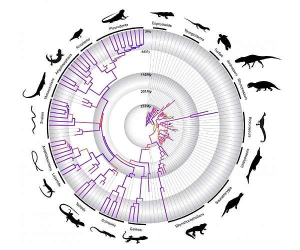 Challenging a 75-year-old notion about how and when reptiles evolved during the past 300 million-plus years involves a lot of camerawork, loads of CT scanning, and, most of all, thousands of miles of travel. Just check the stamps in Tiago R. Simoes ' passport. Simoes is the Alexander Agassiz Postdoctoral Fellow in the lab of Harvard paleontologist Stephanie Pierce. From 2013 to 2018, he traveled to more than 20 countries and more than 50 different museums to take CT scans and photos of nearly 1,000 reptilian fossils, some hundreds of millions of years old. It amounted to about 400 days of active collection, helping form what is believed to be the largest available timeline on the evolution of major living and extinct reptile groups. Now, a statistical analysis of that vast database is helping scientists better understand the evolution of these cold-blooded vertebrates by contradicting a widely held theory that major transitions in evolution always happened in big, quick (geologically speaking) bursts, triggered by major environmental shifts. The findings are described in a recently published paper in Nature Communications. In it, researchers show that the evolution of extinct lineages of reptiles from more than 250 million years ago took place through many small bursts of morphological changes, such as developing armored body plans or wings for gliding, over a period of 50 million years instead of during a single major evolutionary event, as previously thought. They also show that the early evolution of most lizard lineages was a continuously slower and more incremental process than previously understood. "It wasn't a sudden jump that kind of established the wide diversity that we see today in reptiles," Simoes said. "There was an initial jump, but relatively small, and then a sustained increase over time of those rates [of evolution] and different diversity values." Evidence of this has been seen in other types of animals, but this is the first time it's been seen in reptiles - one of the most diverse animals on the planet, with more than 10,000 different species and a dizzying variety of abilities and traits. Consider how some lizard species can freeze solid overnight then thaw the next morning, or how turtles grow protective armor. The findings run contrary to the evolutionary theory of adaptive radiation that Harvard paleontologist George G. Simpson popularized in the 1940s, which sought to explain the origins of the planet's biological diversity. Adaptive radiation has been the focus of intense investigation for decades, but wasn't until recent years that the technology, methods, and data have existed to precisely measure rapid rates of evolution in the fossil record in terms of different animal species, morphologies, and at the molecular level using DNA. Researchers of this study also included Pierce, the Thomas D. Cabot Associate Professor of Organismic and Evolutionary Biology and curator of vertebrate paleontology in the Museum of Comparative Zoology; Oksana Vernygora, a graduate student from the University of Alberta in Canada; and Professor Michael Wayne Caldwell at Alberta. Simoes traveled to almost all of the world's major natural history museums to collect the data for the study, including the national natural history museums in London, Paris, Berlin, Ottawa, Beijing, and Tokyo. In the U.S., he visited the Smithsonian National Museum of Natural History, the Carnegie Museum of Natural History, and Harvard's Museum of Comparative Zoology. The scientists believe that by understanding how animals evolve over longer periods of time, they can glean a number of lessons on ecology and how organisms are affected by environmental changes. Using the database, researchers can determine when major reptile lineages or morphologies originated, see how those changes affected reptile DNA, and learn important lessons about how species were impacted by historical events. Reptiles, for instance, have survived three major mass extinction events. The biggest was the Permian-Triassic mass extinction about 250 million years ago that killed about 90 percent of the planet's species, earning it the moniker the Great Dying. It's believed to have been caused by a buildup of natural greenhouse gases. The timeline researchers created found that the rates at which reptiles were evolving and the anatomical differences among them before the Great Dying were nearly as high as after the event. However, it was only much after the Great Dying that reptiles became dominant in many ecosystems and extremely diverse in terms of the number of different species. That finding cemented that fast rates of anatomical change don't need to coincide with genetic diversity or an abundance of species (called taxonomic diversity), and further rebutted adaptive radiation as the only explanation for the origin of new animal groups and body plans. The researchers also note that it took reptiles almost 10 million years to recover to previous levels of anatomical diversity. "That kind of tells you on the broad scheme of things and on a global scale how much impact, throughout the history of life, sudden environmental changes may have," Simoes said. Further evidence that contradicted adaptive radiation included similar but surprising findings on the origins of snakes, which achieved the major aspects of their skinny, elongated body plans early in their evolution about 170 million years ago (but didn't fully lose their limbs for another 105 million years). They also underwent rapid changes to their skulls about 170 to 165 million years ago that led to such powerful and flexible mouths that today they can swallow whole prey many times their size. But while snakes experienced the fastest rates of anatomical change in the history of reptile evolution, these changes did not coincide with increases in taxonomic diversity or high rates of molecular evolution as predicted by adaptive radiations, the researchers said. The scientists weren't 