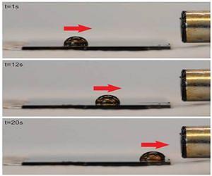 Researchers at MIT and in Saudi Arabia have developed a new way of making surfaces that can actively control how fluids or particles move across them. The work might enable new kinds of biomedical or microfluidic devices, or solar panels that could automatically clean themselves of dust and grit. "Most surfaces are passive," says Kripa Varanasi, an associate professor of mechanical engineering at MIT, and senior author of a paper describing the new system in the journal Applied Physics Letters. "They rely on gravity, or other forces, to move fluids or particles." Varanasi's team decided to use external fields, such as magnetic fields, to make surfaces active, exerting precise control over the behavior of particles or droplets moving over them. The system makes use of a microtextured surface, with bumps or ridges just a few micrometers across, that is then impregnated with a fluid that can be manipulated - for example, an oil infused with tiny magnetic particles, or ferrofluid, which can be pushed and pulled by applying a magnetic field to the surface. When droplets of water or tiny particles are placed on the surface, a thin coating of the fluid covers them, forming a magnetic cloak. The thin magnetized cloak can then actually pull the droplet or particle along as the layer itself is drawn magnetically across the surface. Tiny ferromagnetic particles, approximately 10 nanometers in diameter, in the ferrofluid could allow precision control when it's needed - such as in a microfluidic device used to test biological or chemical samples by mixing them with a variety of reagents. Unlike the fixed channels of conventional microfluidics, such surfaces could have "virtual" channels that could be reconfigured at will. While other researchers have developed systems that use magnetism to move particles or fluids, these require the material being moved to be magnetic, and very strong magnetic fields to move them around. The new system, which produces a superslippery surface that lets fluids and particles slide around with virtually no friction, needs much less force to move these materials. "This allows us to attain high velocities with small applied forces," says MIT graduate student Karim Khalil, the paper's lead author. The new approach, he says, could be useful for a range of applications: For example, solar panels and the mirrors used in solar-concentrating systems can quickly lose a significant percentage of their efficiency when dust, moisture, or other materials accumulate on their surfaces. But if coated with such an active surface material, a brief magnetic pulse could be used to sweep the material away. "Fouling is a big problem on such mirrors," Varanasi says. "The data shows a loss of almost 1 percent of efficiency per week." But at present, even in desert locations, the only way to counter this fouling is to hose the arrays down, a labor- and water-intensive method. The new approach, the researchers say, could lead to systems that make the cleaning process automatic and water-free. "In the desert environment, dust is present on a daily basis," says co-author Numan Abu-Dheir of the King Fahd University of Petroleum and Minerals (KFUPM) in Saudi Arabia. "The issue of dust basically makes the use of solar panels to be less efficient than in North America or Europe. We need a way to reduce the dust accumulation." One advantage of the new active-surface system is its effectiveness on a wide range of surface contaminants: "You want to be able to propel dust or liquid, many materials on surfaces, whatever their properties," Varanasi says. MIT postdoc Seyed Mahmoudi, a co-author of the paper, notes that electric fields cannot penetrate into conductive fluids, such as biological fluids, so conventional systems wouldn't be able to manipulate them. But with this system, he says, "electrical conductivity is not important." In addition, this approach gives a great deal of control over how material moves. "Active fields - such as electric, magnetic, and acoustic fields - have been used to manipulate materials," Khalil says. "But rarely have you seen the surface itself interact actively with the material on it," he says, which allows much greater precision. While this initial demonstration used a magnetic fluid, the team says the same principle could be applied using other forces to manipulate the material, such as electric fields or differences in temperature.