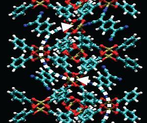 Scientists from the National Institute of Standards and Technology (NIST) and Sandia National Laboratories have added something new to a family of engineered, high-tech materials called metal-organic frameworks (MOFs): the ability to conduct electricity. This breakthrough-conductive MOFs-has the potential to make these already remarkable materials even more useful, particularly for detecting gases and toxic substances. MOFs are three-dimensional crystalline materials with nanoscale pores made up of metal ions linked by various organic molecules. MOFs have huge surface areas, and scientists can easily control the size of their pores and how the pores interact with molecules by tinkering with their chemistries. These characteristics make them ideal for use as catalysts, membranes or sponges for gas storage or for drug delivery, among other applications. Thousands of new MOF structures are discovered and characterized each year. While they come in a dizzying array of chemistries and structures, none of them conducts electricity well. The NIST/Sandia team developed a method to modify the electrical conductivity of MOF thin films and to control it over six orders of magnitude. Their findings will appear in the journal Science.* "MOFs are typically extremely poor electrical conductors because their constituent building blocks, the organic linkers and the metal ions, don't really talk to each other in terms of electrical conduction," says NIST materials engineer Andrea Centrone. "Our work points to a way of controlling and increasing their conductivity." The group accomplished this by "infiltrating an insulating MOF with redox-active, conjugated guest molecules." In other words, they infused and bound electron-sharing molecules into MOF thin films to create a material that is stable in air and approximately a million times more conductive than the unaltered MOF. "Based on several spectroscopic experiments, we believe that the guest molecules serve two important purposes: they create additional bridges between the metal ions-copper, in this case-and they accept electrical charge," says NIST chemist Veronika Szalai. According to NIST physicist Paul Haney, who provided some modeling for the experimental data, the arrangement of the guest molecules in the MOF creates a unique conductivity mechanism while preserving the benefits of the porous MOF crystalline structure. These porous and conductive MOFs may be the first in an entirely new class of materials that could be used for sensing, conformal electronics (electronics that can bend and conform to unusual shapes), and other as-yet-unknown applications. "Our discovery gives chemists and engineers a whole new degree of freedom to tailor these materials for their technological applications," says Centrone. "I would not be surprised if solar cells could be made using this new class of materials." A.A. Talin, A. Centrone, A.C. Ford, M.E. Foster,V. Stavila, P. Haney, R.A. Kinney, V. Szalai, F. El Gabaly, H.P. Yoon, F. Leonard and M.D. Allendorf. Tunable electrical conductivity in metal-organic framework thin-film devices. Science Express. Posted online Dec. 5, 2013.